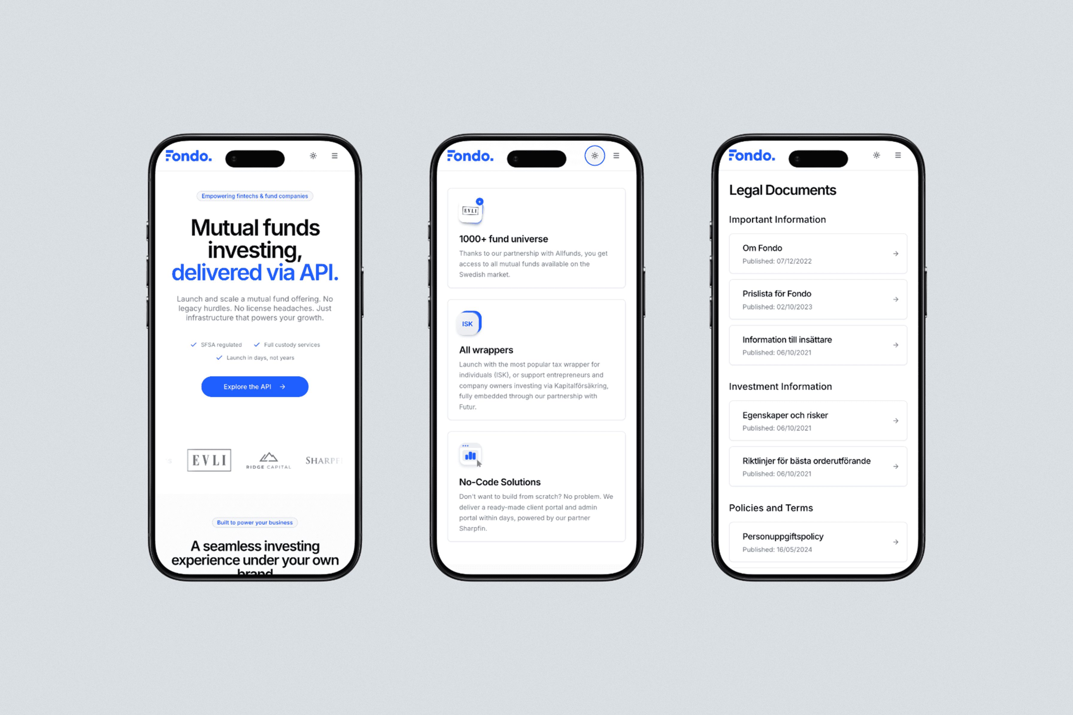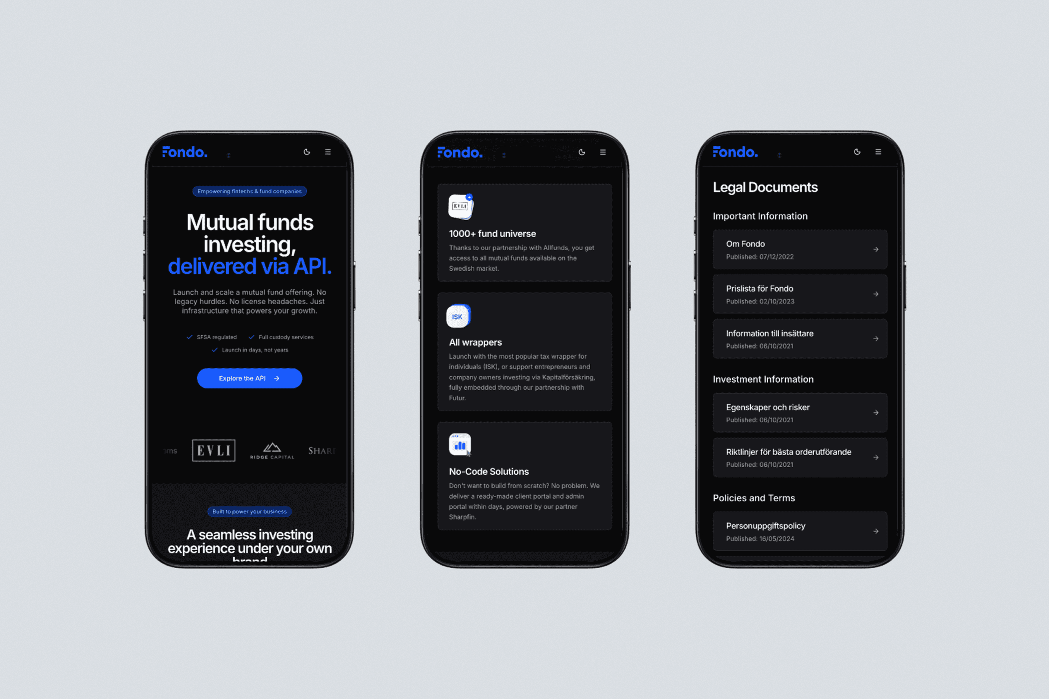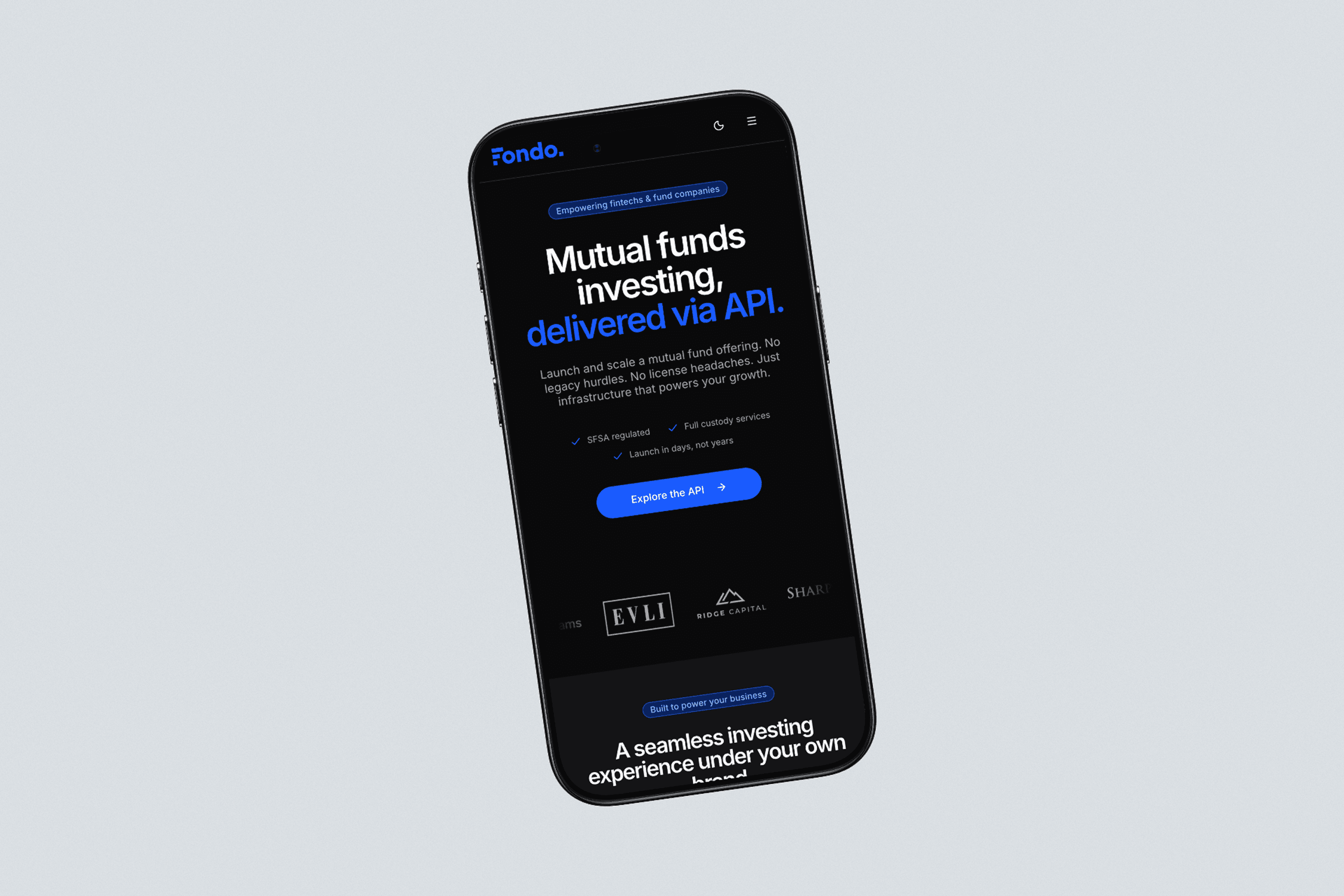 Fondo had evolved into a B2B, API-first wealth infrastructure platform, but its public presence had not kept pace. The website, search results, and external communication still reflected earlier B2C explorations and transitional messaging, creating confusion for clients, partners, and investors. The challenge was to reposition Fondo clearly and quickly - improving credibility, searchability, and shareability - without pulling engineering focus away from core product development or investing in a long, resource-heavy redesign process.
