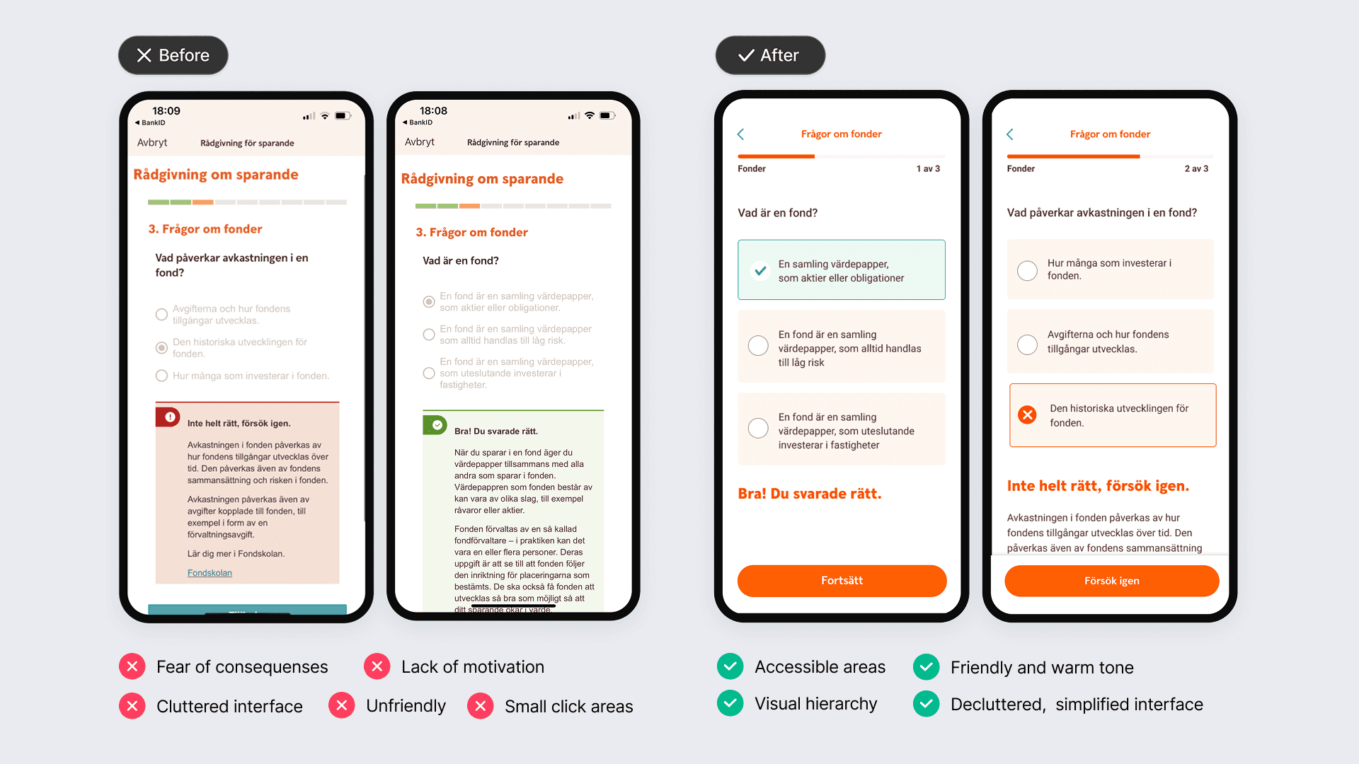 Swedbank needed to bring legally compliant financial advisory into digital channels to scale advisory services and meet changing customer expectations. I led UX design for the first advisory MVPs, solving a critical 95% drop-off on the first screen while navigating regulatory requirements, design system constraints, and cross-functional stakeholder alignment.